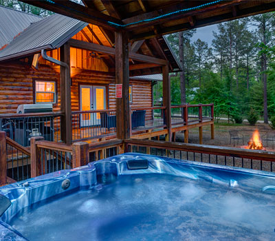 Natural gas only fireplaces inside and out, beautiful oak floors, and direct access to the covered porch and hot tub from each king suite are just a few of the perks at 5-S Cabin. 5-S Cabin has a fully furnished custom designed kitchen and offers spacious room for dining and entertaining. An open concept kitchen, dining area and living room with big, beautiful windows, leather recliners, sofa, and flat screen SmartTV will be the perfect place to unwind after a day on the golf course, lake, or park.