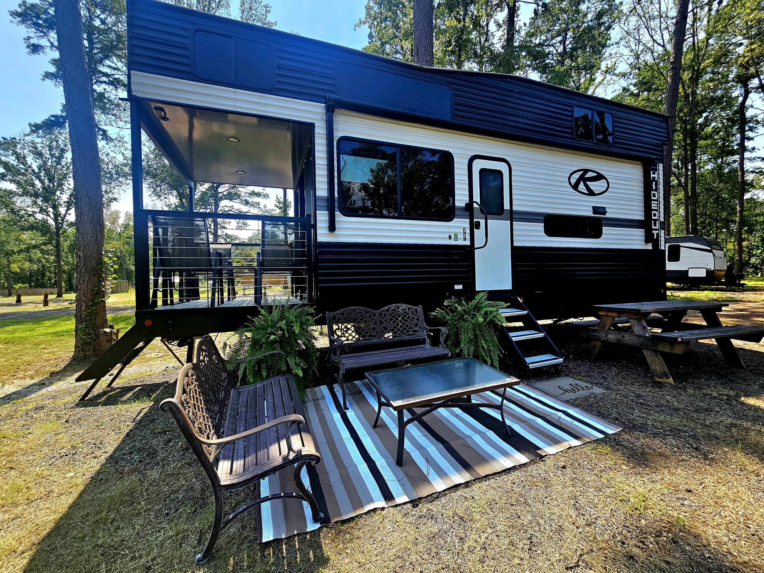 Includes~ gas fire pit, gas grill, exterior deck off of the king suite, games, and a couple of fishing poles for the park pond, marshmallows and roasting sticks.