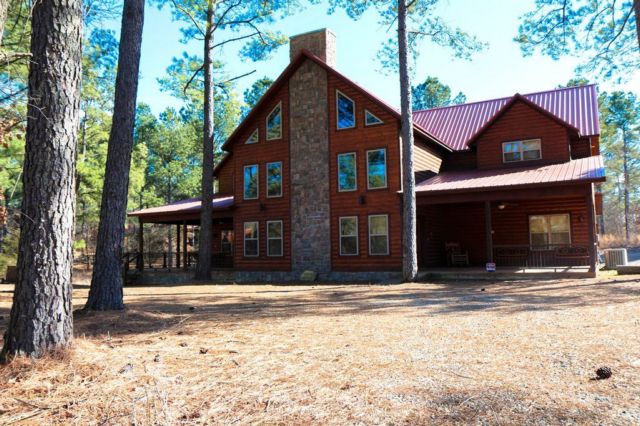 Caddy Shack was built in 2014 and includes accommodations for 25 guests. With 6 king bedrooms and 7.5 bathrooms, you and your family and friends will have plenty of room to spread out and enjoy this rustic retreat. One of the two downstairs king bedrooms is Handicapped friendly with only a small lip to enter the custom tile shower with grab bars. The cabin also has a ramp making it easy for wheel chairs to access the front door. The other downstairs king bedroom and 4 more king bedrooms upstairs each feature full baths. All bedrooms are equipped with a television and DirecTV programming.