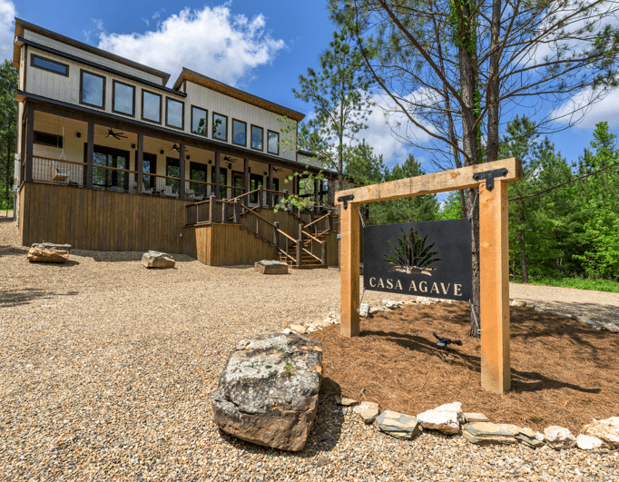 Tucked into the peaceful woodlands of Broken Bow, Casa Agave is a Spanish revival-inspired retreat that perfectly blends rustic charm with modern comfort. With space for up to 16 guests, this beautifully designed cabin features four king suites, a fun-filled bunk room/loft, and extensive indoor and outdoor amenities—perfect for families and large groups.