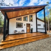 Cedar Stillness is a brand-new cabin nestled in the woods of Bear Ridge. Featuring a spacious master suite, soothing bunk nook, and open floor plan, Cedar Stillness provides ample sleeping, dining, and gathering space for up to 6 guests. Enjoy the outdoor patio and fireplace, amplified by the natural surroundings, and professionally decorated interior furnishings, complete with full kitchen to make you feel right at home. Whether you choose to host elaborate dinners at the stately dining table, melt the day away in the luxurious hot tub, or gather around the fire pit to enjoy the peaceful night air, Cedar Stillness has something for everyone to feel comfortable, relaxed, and refreshed. Amenities: 1 king master suite, 1 twin bunk bed, 1 full-size sleeper sofa. Wifi. Jacuzzi. Firepit. Outdoor dining. NOT pet/animal friendly. Air conditioned. Big-screen TVs. Family games. Fully stocked kitchen. Maximum Occupancy: 6 guests