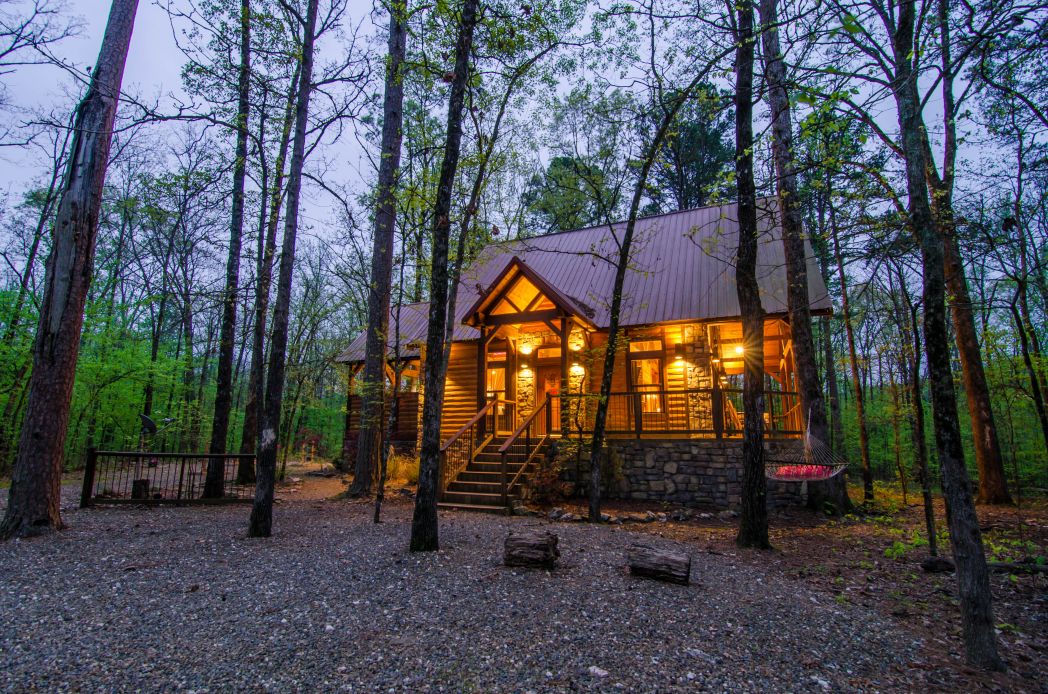 A One Bedroom Luxury Cabin. Adults only. The cabin features a Hanging KING bed * Pool Table * Outdoor Sauna * Outdoor Shower * King Bed * Cabin can sleep 2 people, maximum occupancy is 2 * Outdoor dining * Propane Grill * Outdoor Hot Tub * Full Kitchen – all pots/pans/dishes/silverware, etc. All you bring is your food. * Aromatherapy Air Bath * Heated bathroom floors * Walk in Shower – all towels, sheets, pillows and blankets provided. All you might bring is your favorite pillow! Located on the North end of the Lake in a cabin development area called Northern Hills. You will fall in Love with the Chasing Fireflies Cabin – Breathtaking. For more information, please visit www.BeaversBendLodging.com or call us directly at 580-494-6639 For larger groups consider Leaping Lizard Lodge.