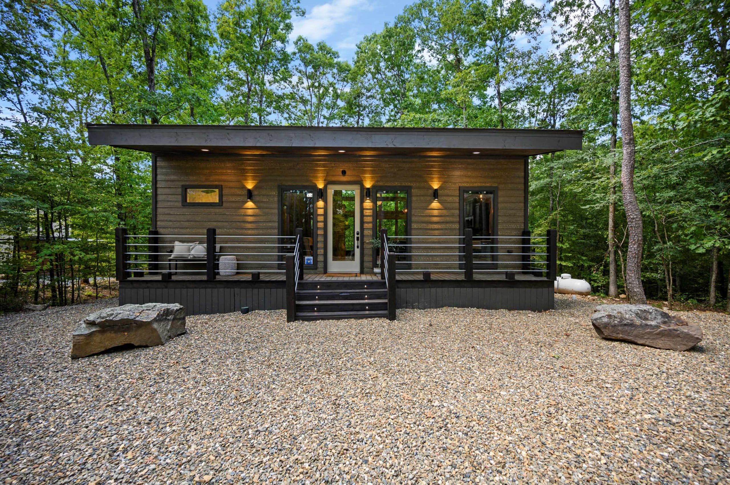 A starter supply of paper towels, toilet paper, bath soap, dishwashing liquid, trash bags, dishwasher tablets, laundry soap, coffee, coffee filters, and salt & pepper will be provided for your stay. All cabins have fully equipped kitchens, washers/dryers, towels, and linens.