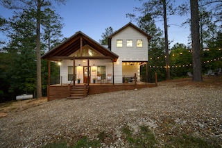 Only minutes from Beavers Bend State Park and Broken Bow Lake which is in the heart of Hochatown, Oklahoma, Fleur de Lake is a modern farmhouse-style cabin with a Mediterranean touch. Other nearby attractions include Mt Fork Brewery, Shuck Me Restaurant, Okie Girls Coffee & Ice Cream, and the Tasting Room. It is great for accommodating different size groups including couples, families, and friends. Another special amenity is the circle drive which is perfect for those who bring their boat or drive separate cars.
