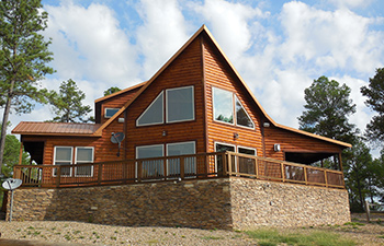 The loft game room features air hockey and foosball, along with games and books for your enjoyment. All three bedrooms offer majestic king beds and dressers in a heavy rich dark wood, a flat screen TV and an HD Blu-Ray DVD player. So bring your favorite Blu-Ray DVD movies and kick back in total comfort, or choose from the massive collection at the cabin. There’s a gas grill one one side of the wrap-around deck, and a charcoal / smoker grill on the other side, along with furnishings for outdoor dining. The oversized hot tub sits on a covered side deck, overlooking the pine forest and the Oklahoma night sky full of stars.