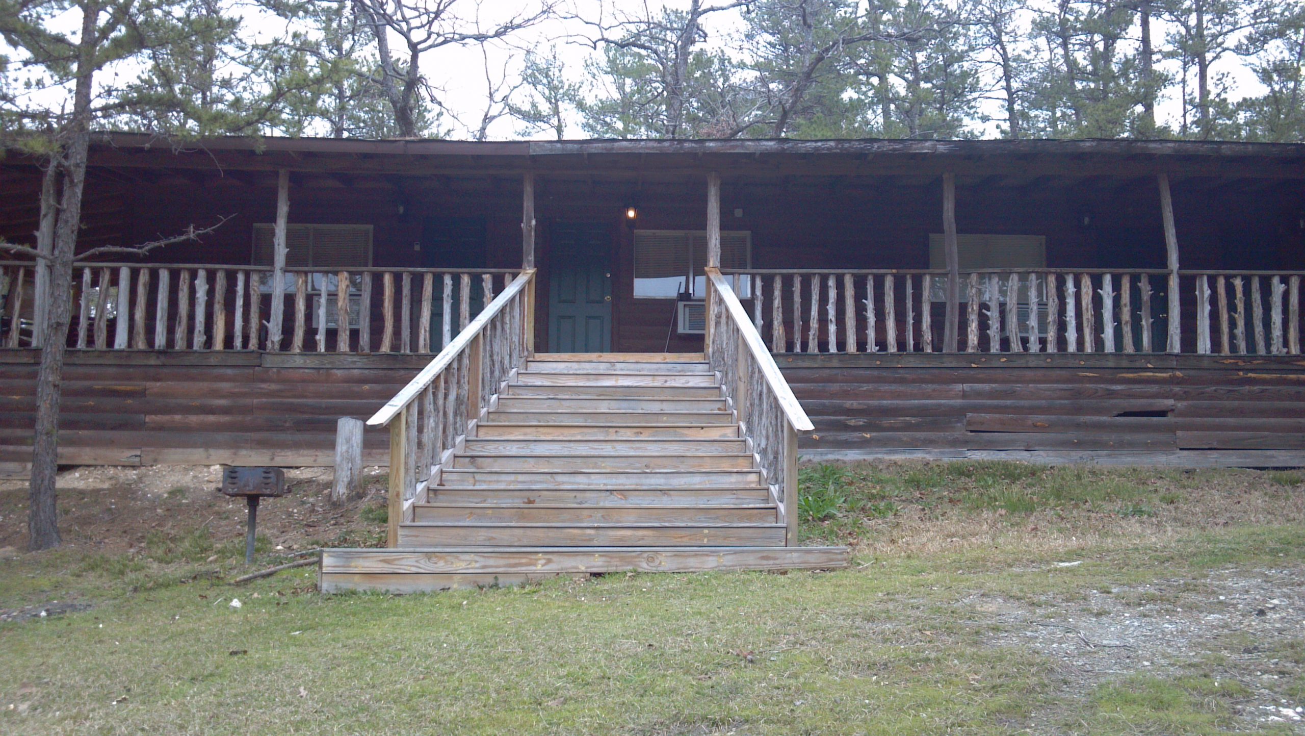 Indian Lodge 1 & 2 Description/ Unit 1 is described below. RENT BOTH AND GET A DISCOUNT. cabin is so long it has 4 different front doors, hince the name Indian Long, the original name. Indian Lodge takes you back to the days where families took vacations and had connecting doors on the hotel rooms so the parents could have their quite time and the kids could have their slumber parties. Indian Lodge has two separate units but shares one extra large covered porch, large yard, large fire pit and a swing set that even us adult that are kids at heart can enjoy. In Indian Lodge 1 you have two separate rooms with a connecting door between and in the living area you have a sleeper sofa, with a bar separating the kitchen and living area with barstools for that perfect breakfast and you have a ¾ bathroom, when you walk thru the connecting door you have a bunk bed with a full bed on bottom and twin top and a Queen bed and a ¾ bathroom. The unit will sleep 7 people comfortably. Indian Lodge 2 has a Queen bed in the living area and a bar separating the living and kitchen area with a ¾ bathroom, when you walk thru the connecting door you have a full size futon, bunk bed with a full bed on bottom and twin on top with the vanity and sink in the main room and ¾ bath also. So if you need the space book the full unit with the prices from $165 – $195 depending on the day of the week and time of year or rent one side for $95 – $110 depending on the day of week and time of year. Sister cabins are Pine Knot, Caddo, Arrowhead, Cedar Ridge, and Osage. The total group will sleep over 40. This grouping sets on 7.5 beautiful wooded acres some of the cabins have swing sets, some have hot tubs, and all have park style grills, fire pits, satellite TV, and covered porches with plenty of outside seating. All linens are provided as well as terry and Coffee, creamer, sugar, and sweet n low. We also provide all your soaps for bath and kitchen you need and salt and pepper for basic cooking. All cabins have pots, pans, dishes, silverware, and utensils are provided. All kitchens have microwaves, coffee pots, and kitchen towels. See we’ve thought of everything so come and relax at one of our beautiful cabins.