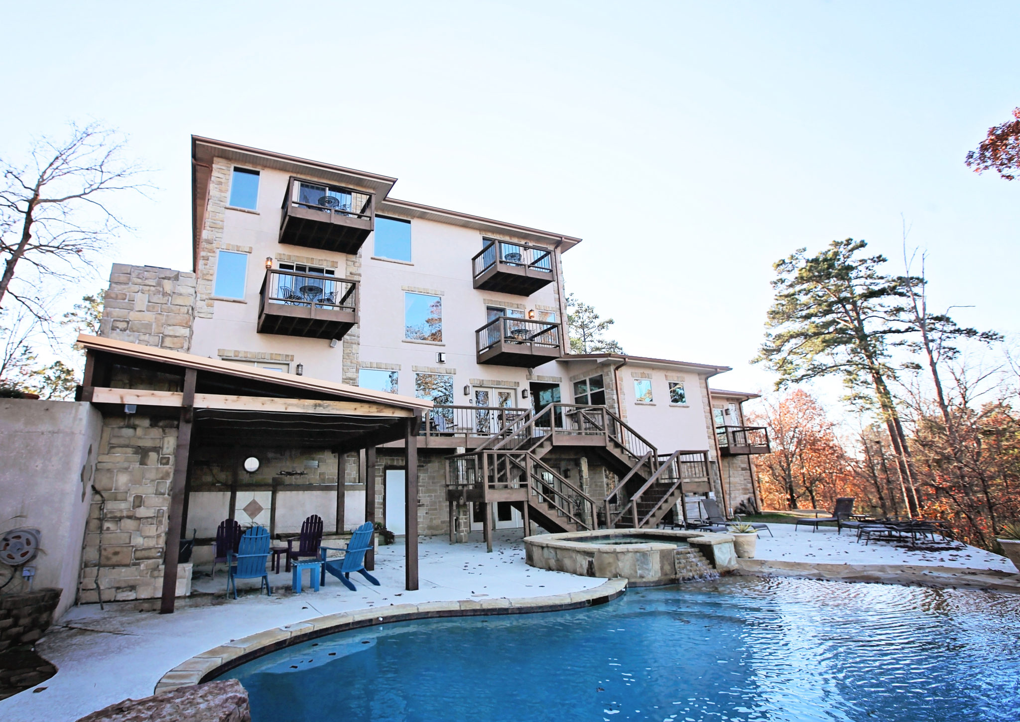 Lago Vista is a luxurious adult only Bed and Breakfast nestled in the Kiamichi Mountains overlooking beautiful Broken Bow Lake and minutes from Beavers Bend State Park. There are 4 rooms available to rent each with it’s own balcony for Eagle, star or lake watching. All the rooms come equipped with King beds, gas fireplace, Jacuzzi tub and private bathroom with walk in showers.