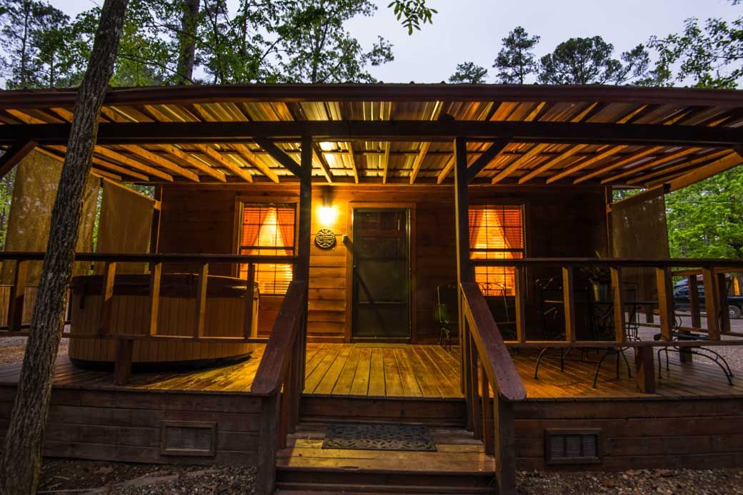 A One Bedroom Economy Cabin with Hot Tub. The cabin features a Queen Bedroom. One bath. * Fire pit * Playground * Hot Tub * Queen (1 Bed) * Cabin can sleep 2 people, maximum occupancy is 4 * Outdoor dining * Charcoal Grill – bring the charcoal * Full Kitchen – all pots/pans/dishes/silverware, etc. All you bring is your food. * One Full Bathroom – all towels, sheets, pillows and blankets provided. All you might bring is your favorite pillow! Located on the North end of the Lake in a cabin development area called Last Resort. Ledgers is the perfect getaway that it cozy and inviting. For more information, please visit www.BeaversBendLodging.com or call us directly at 580-494-6639