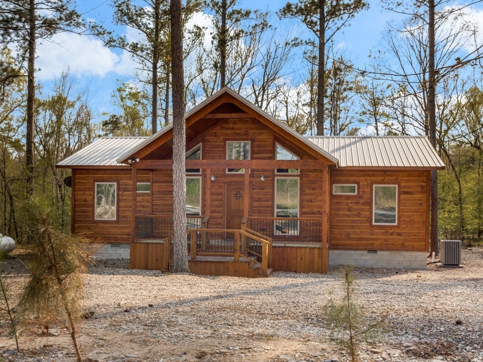 My Way is a 2-bedroom cabin located in Eagle Mountain West Development that accommodates up to 6 guest. This custom build is decorated with mid-century modern pops of color. A welcoming front porch spans the length of the cabin.