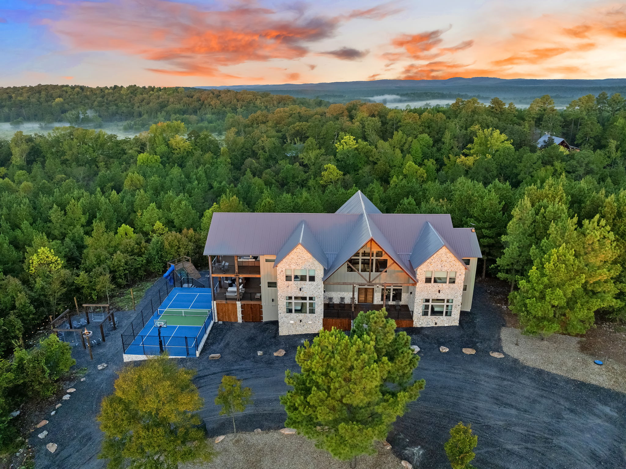 Welcome to Panorama Peak, an extraordinary 8-bedroom, 8.5-bathroom lodge where mountain views, luxury amenities, and endless entertainment come together for the ultimate Broken Bow getaway. Designed for large groups, family gatherings, and retreats, this property offers upscale finishes, expansive living spaces, and fun for all ages—including a pickleball court, game room, and outdoor living areas.