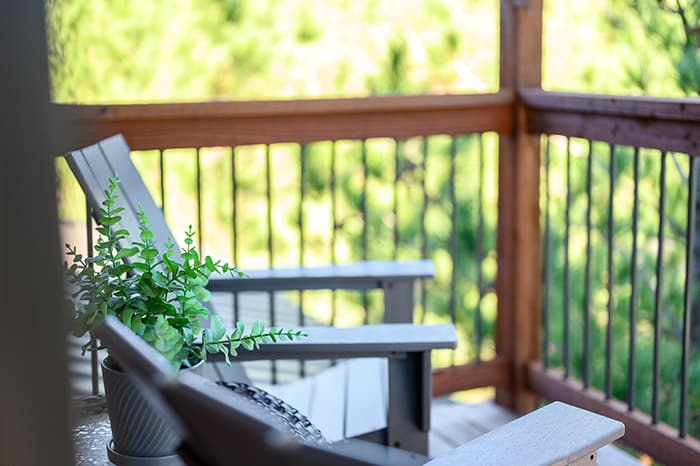 Outside enjoy the serenity of being nestled in the pines. Take in the view of the forest while soaking in the covered hot tub, lounge on the back deck, toss horseshoes, or roast marshmallows at the fire pit under the stars. The views from the balcony are simply stunning and is the best place to enjoy a cup of coffee in the mornings.