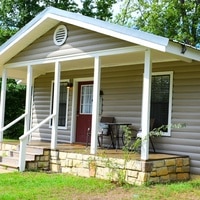 This cozy 900 sq ft 2 bedroom 2 bath cabin with beautiful pine interior sits on the banks of Glover River. It sleeps six with two bedrooms each with a queen bed and a pullout in the living room. It has two ensuite bathrooms. River Rock has a fully equipped kitchen with a dishwasher, washer and dryer, central heat and air, satellite TV, propane grill, and patio seating on the large covered back porch. It is an easy walk to the Glover River just off the back deck . Convenient location with all paved roads, just 30 miles north of Hochatown. Also included is a hot tub, DVD player, limited WiFi, and fire pit with firewood provided.