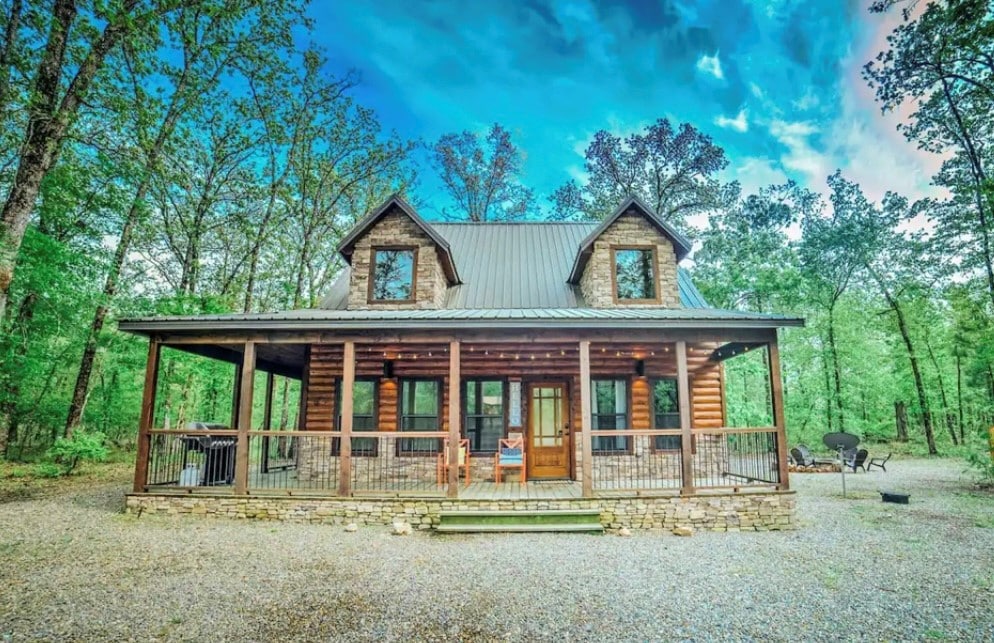 Second Wind is a lovely 4 bedroom cabin, perfect for small families or a couples getaway! Open floor plan to the living room allows for family time while being able to prepare meals and enjoy the floor to ceiling fireplace and the many windowed view. The bottom floor hosts a king bedroom, bunk room for the kiddos, full bath, laundry and half bath. Set up allows for adults to be on the same floor with children and couples have their pricing with two king bedrooms and a full bath upstairs. Hot tub, games, firepit, swing set and much more.