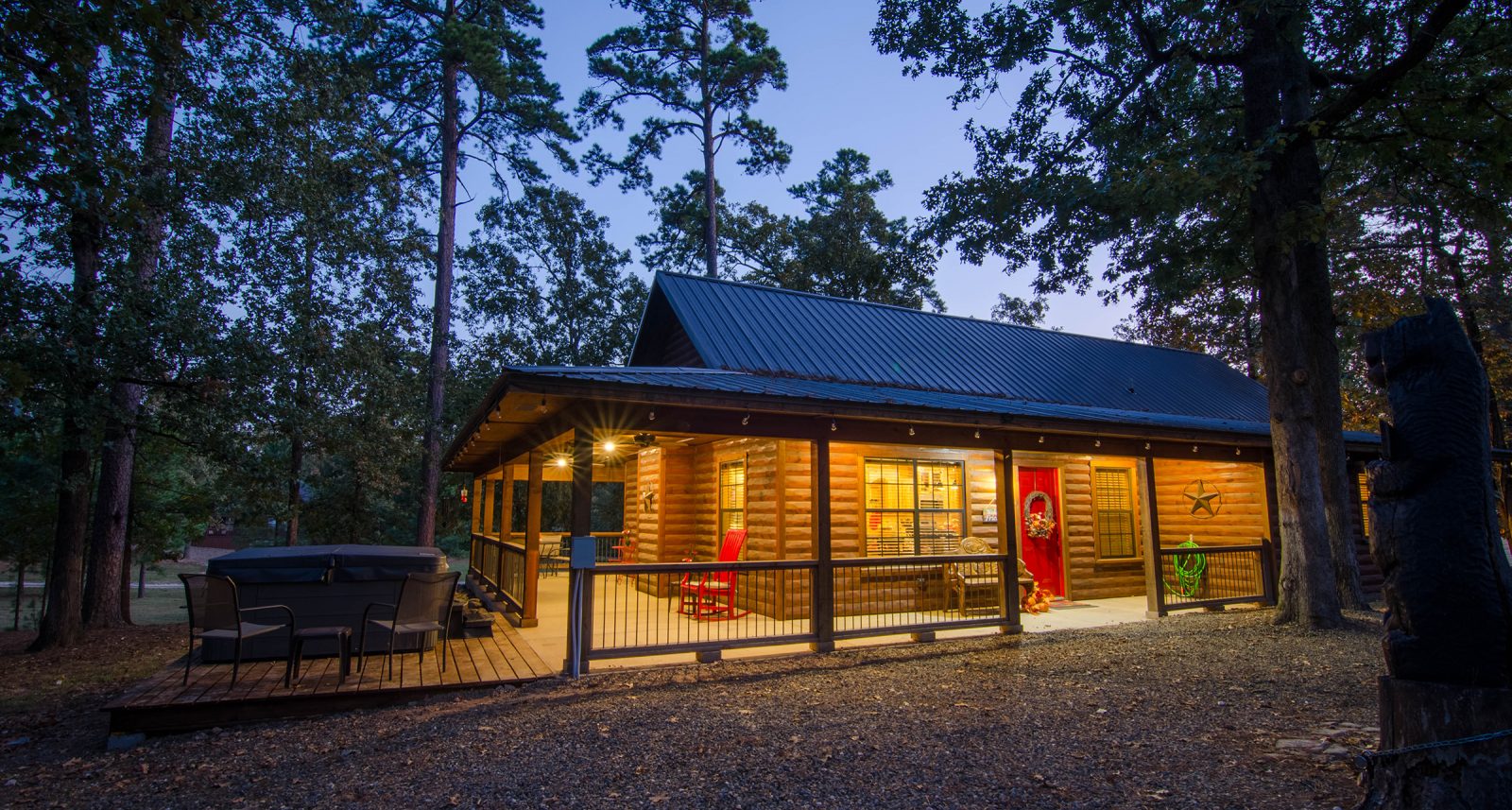 Sleeps 6 – Awaiting you on 2.5 acres, Shine On Harvest Moon beckons to those that are looking for a little room to stretch out and breath deep for a time of rest. Within walking distance to Burgers and Blues which often offers live music, it’s the perfect location for entertainment and refreshment. Shine On is a pet friendly 3 bed, 2 bath cabin that offers wifi, propane fireplace, hot tub, cable, DVD player, dishwasher, fire pit, charcoal grill, and horseshoes.