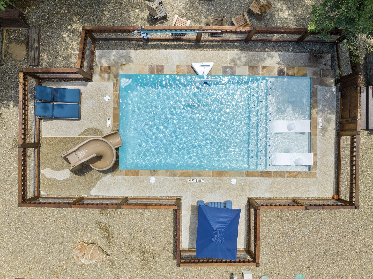SPLASH TIME LODGE, formally known as Spare Time Lodge, has a brand new saltwater pool with a tanning ledge, pool side basketball goal, and water slide! SPLASH TIME LODGE is a spacious 3100 sq ft. 4-bedroom 4.5 bath cabin located in the Pine Hill West area of Hochatown and is conveniently located to area attractions.