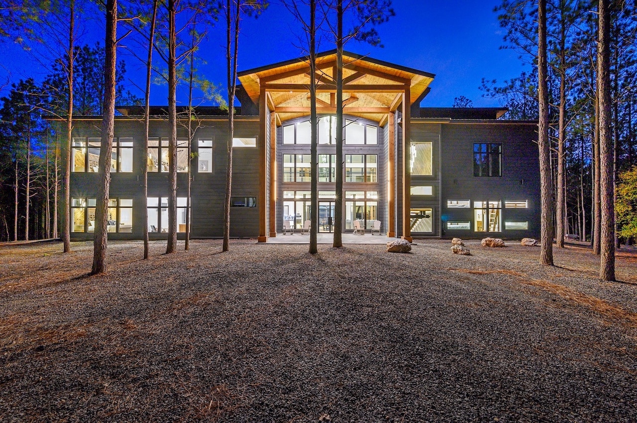 At the end of the day, slumber restfully as all of our bedrooms enjoy luxury mattresses and linens for your comfort. Featuring 5 king bedroom with ensuite bathrooms, a double queen bedroom with ensuite bathroom, not one, but TWO bunk rooms each having 3 queen over queen beds and each bunk room with their own full bathroom, Stags Leap Lodge can accommodate up to 38 guests in beds. No uncomfortable pull-out couches, blow-up air mattresses, or futons here! The spacious king master ensuite awaits you with a large TV, and expansive views of the pines and surrounding woodlands, personal coffee bar nook, and a 3rd story loft with views no other room in the house captures. The ensuite bath has a large soaking tub, huge double walk-in shower, double sinks, and a chandelier that’s sure to stop you in your tracks. We didn’t stop there though, the incredible patio off this master suite not only hosts a private sitting area amongst the treetops, but also a photo opp only Stags Leap Lodge could provide!