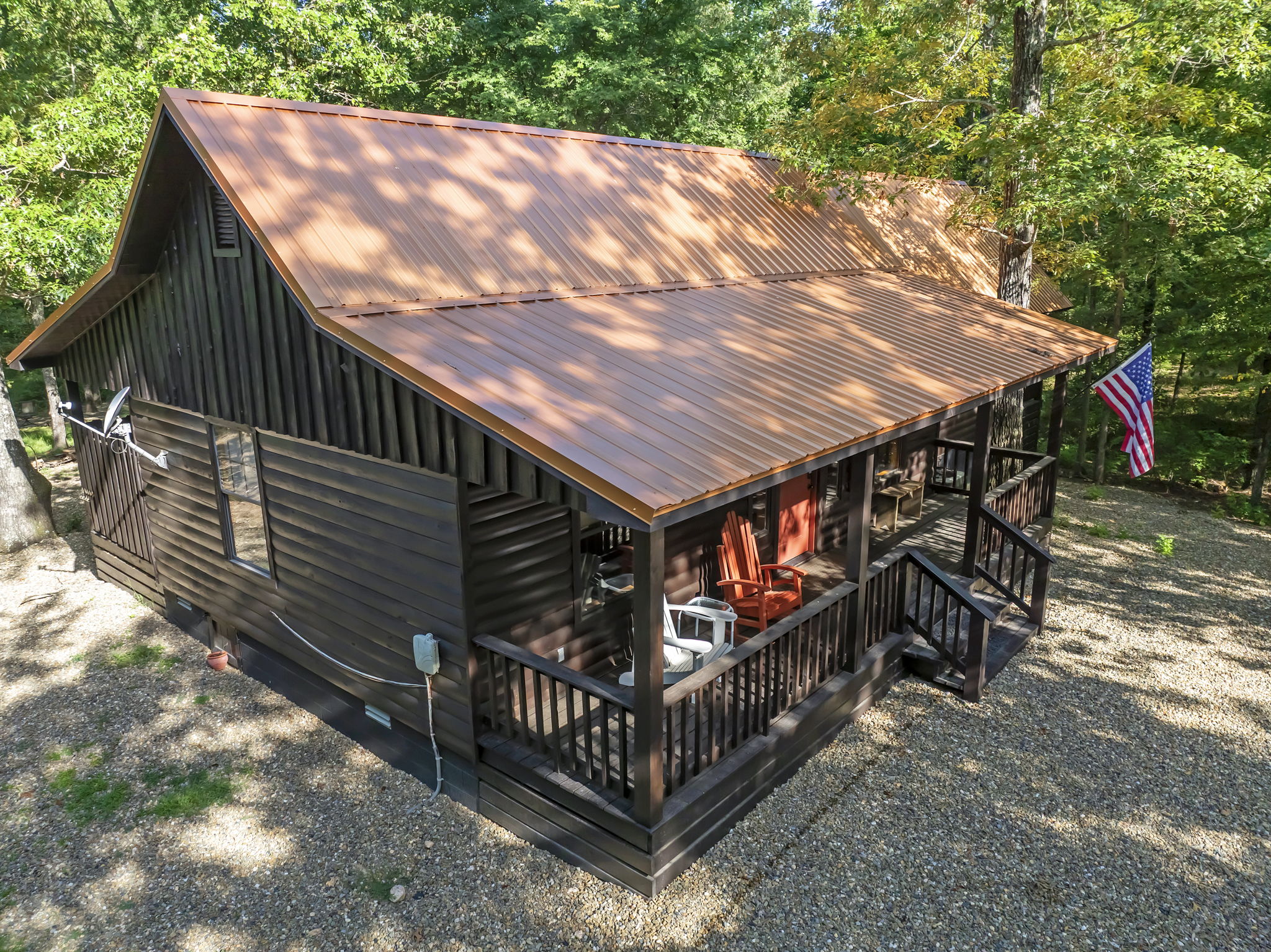 Step onto the front deck, drop your things, and settle into a rocking chair as the breeze moves through the trees. Inside, you’re welcomed by the warm glow of a fireplace in the cozy front living room—complete with a sleeper sofa and smart TV. The heart of the home is the inviting cottage-style kitchen, fully equipped for quiet getaways and featuring counter seating for two and a Keurig for your morning coffee. Share meals at the dining table for four, located in the spacious second living room. This room also has its own fireplace, smart TV, and sleeper sofa—and can be closed off from the rest of the home to create a private second bedroom.