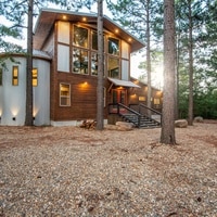 “The Barn On The Creek” – the name says it ALL! Professionally designed and decorated giving this large, rustic cabin a high-end luxury and modern farmhouse feel! Is that a Silo? Yes, it is! You will find the large luxury master suite soaker tub located inside the silo along with 2 separate showers! Featuring 6+ Bedrooms, 2 Game Rooms,and nearly 5000 Square Feet of living space making this one-of-a-kind creek property a MUST visit on your next Broken Bow Lake Vacation! It even has an on-site Tesla charger for your electric car! The open-concept living room, dining, and kitchen space is perfect for entertaining! Don’t worry, the cook in the family can enjoy a kitchen that would fancy any of your chef’s desires! Stainless steel KitchenAid appliances, sleek luxury modern design, and fully stocked with everything you could need to prepare your best meals right at the cabin! Dinner is served! Enjoy your meal inside, or outdoors listening to the creek run below! Belly up to the rustic, cantina-style bar inside or enjoy the pass-through window to receive a cold beverage on the porch! The Barn on the Creek offers 5 King Bedrooms with en-suite bathrooms and a Large Bunk Room with 12 Twin beds. Ready for some fun? This place is loaded, offering all the amenities you could need! The 2 Large Game rooms offer a Pool Table, Shuffleboard, Retro Cocktail Arcade, Foosball! There is also outdoor games like Corn Hole, Horseshoes, Swings, Play Set for kids and so much more! You don’t even have to leave to offer a weekend full of Family Fun and Entertainment! Surrounded by the Towering Pines of Lost Creek and the sweet sounds of the creek running below, this makes the perfect spot for enjoying an evening in the Hot Tub, telling Big Foot stories around one of the two Fire Pits, or grilling dinner on the Patio! Cabin Details: Large cabin on private creek and secluded in the woods 5 King beds 12 Twin beds 22 Max occupancy Tesla charger 12’ Shuffleboard Pool Table Retro Arcade Hot Tub Horse shoes Corn Hole Outdoor kids’ playset Gas Grill 2 Outdoor Fire pits (barn and creek) Kitchen Aid appliances Smart TVs in bedrooms 70” TV in living room over fireplace Outdoor party lights NO Pets! NO EXCEPTIONS!! 2 Full Size Washers/Dryers Free Fiber WIFI Need a little more room? Check out our Sister Cabin, “The Cabin on the Creek” just down the hill with 2 bedrooms Accommodating 6 More guests!
