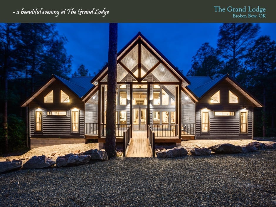 The Grand Lodge is one of the the Premier Luxury Cabins in the Broken Bow area. Perfect for 4 couples, a girls weekend, guys fishing trip, family reunions or any large group. Featuring 4 master suites with 4 master baths, this brand new cabin offers high end luxury at every turn.
