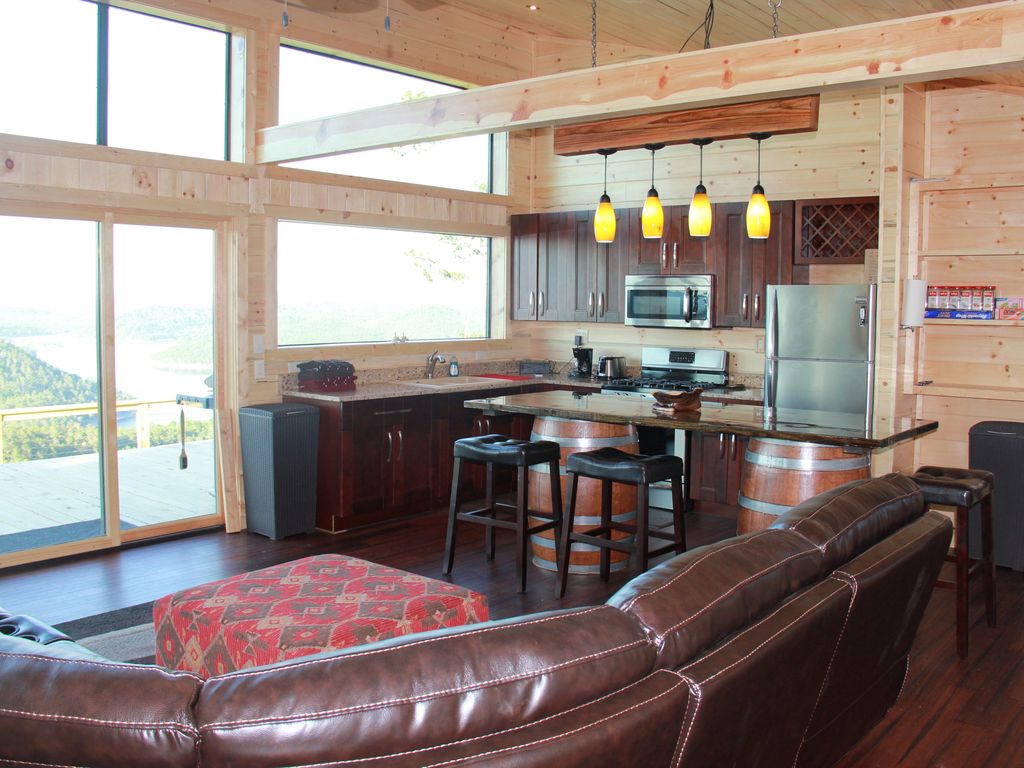 The Summit house has breathtaking views of the the lake and mountains from every room. Gorgeous views bring relaxation from the spacious King Master bedroom as well as the second Queen bedroom. The Summit House’s large living/dining area offers a space for quality time with friends & family while enjoying a fresh beverage. A beautiful bar off the kitchen will seat 5 where you can enjoy a meal cooked in the all stainless steel kitchen or the outdoor grill. If you prefer meals outside on the 2 level deck to take in the views, there will be outdoor furniture as well.