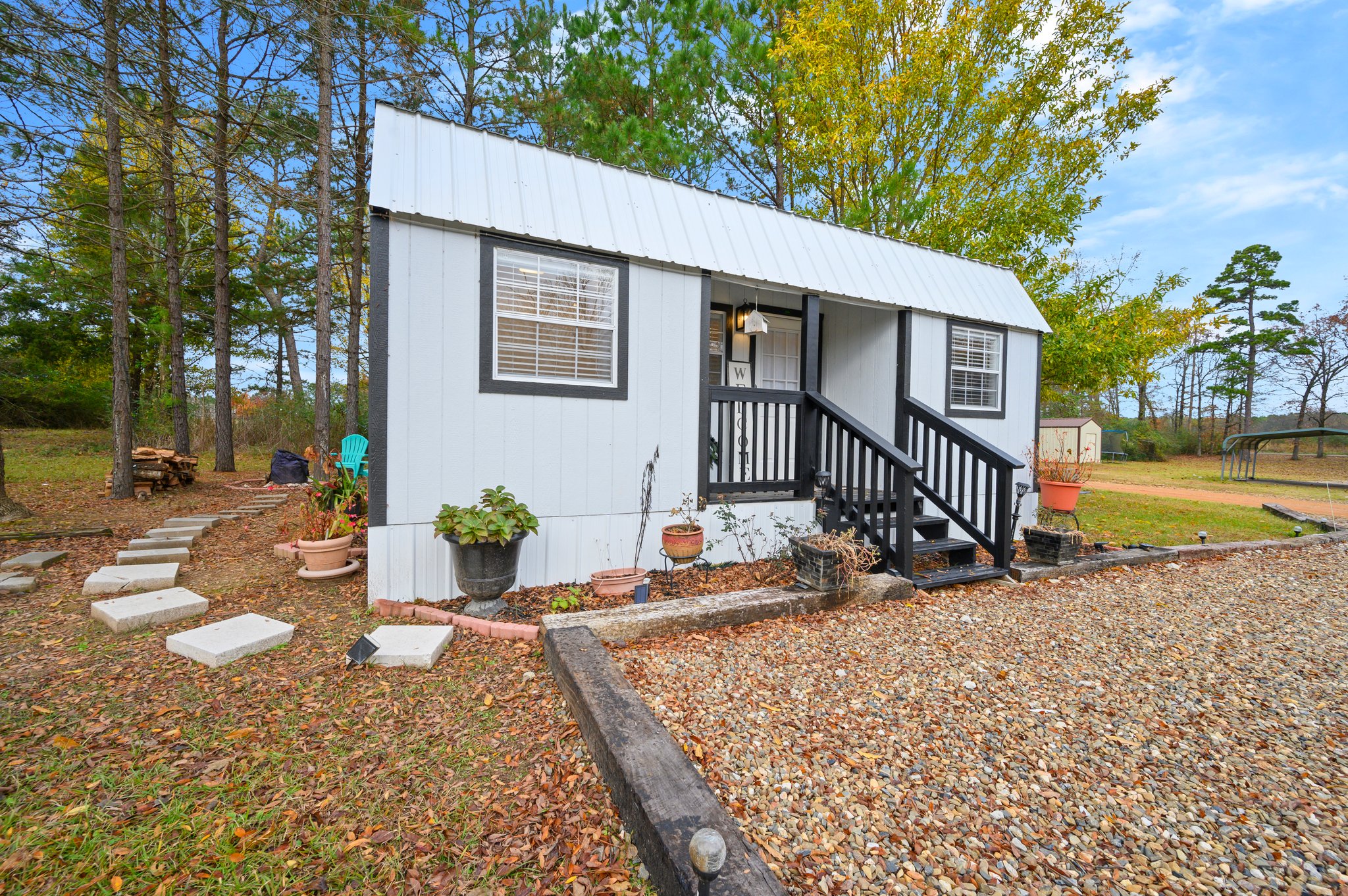 Tiny house. Located along a quiet road just north of the city center, peace and privacy are in abundance as you settle in and make yourself at home. Lose yourself in the pages of a good book or sneak in a quiet afternoon nap in the hammock in the back yard, admiring the tranquil landscape. As the sun sets, gather around a crackling campfire and marvel at the stars that feel close enough to touch.Â