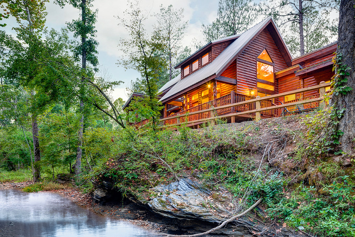 Escape to one and a half acres of peace and quiet at Tranquility Trails Cabin. Enjoy vista views overlooking Fork Creek in Timber Creek Trails in this cozy cabin on a bluff; featuring hardwood floors, vaulted ceilings, and native oak and cypress beams.