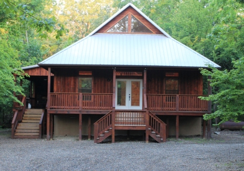 Twin Creeks cabin is designed for two couples or a family to enjoy with lots of space. The two master bedrooms each have king size beds. The master bedroom has a full bath with tile shower and a garden style soaking tub. The second master bedroom has a king size bed with an attached full bath. Twin Creeks features two level of decks. The main floor deck level has a rock fireplace and a private hot tub room. The kitchen is fully equipped with gas cook top, gas stove, dishwasher. The hot tub is in an enclosed screened porch. Enjoy the sounds of North Lukfata Creek only feet away from the cabin decks.