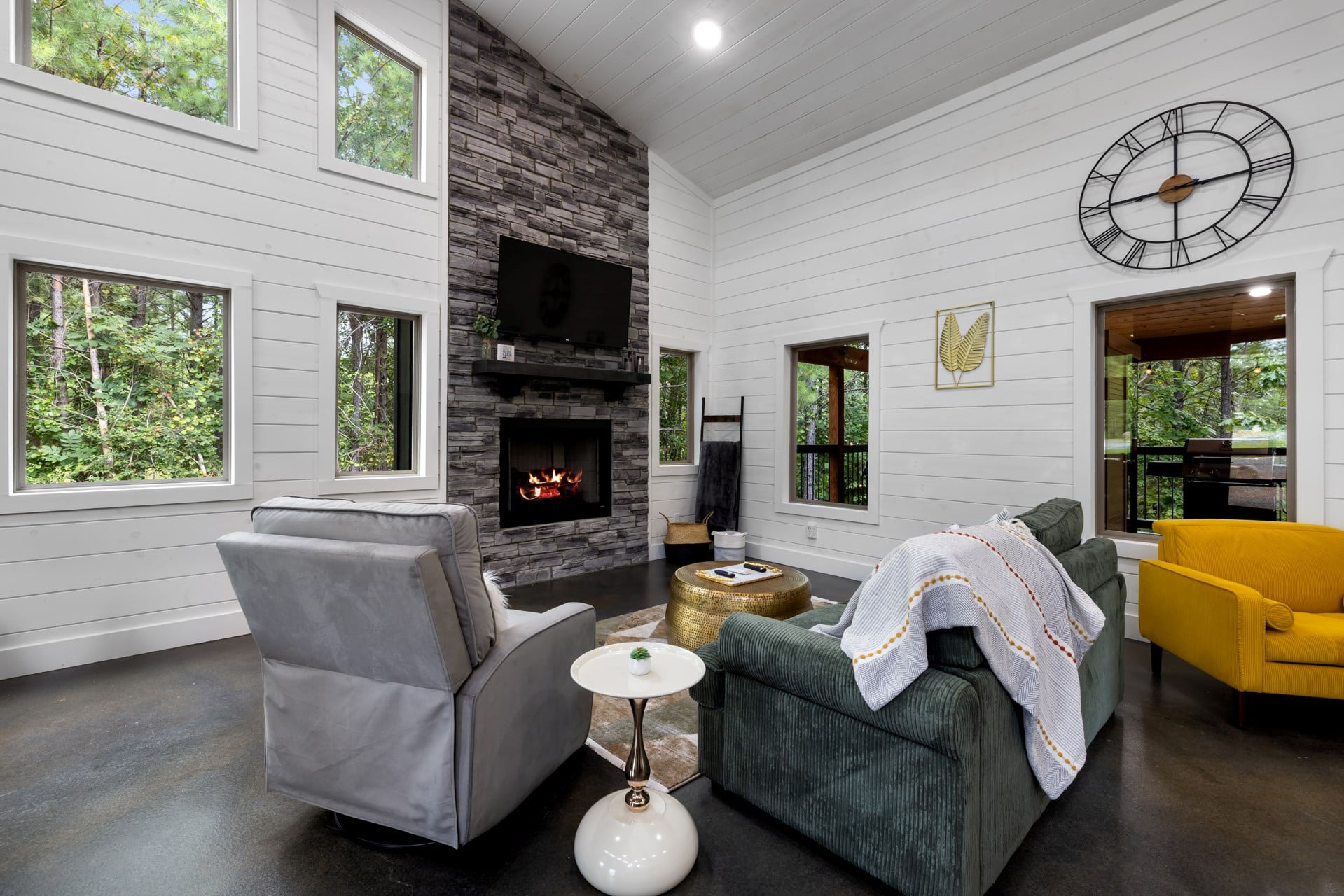 The clean lines and modern amenities of this 1-bedroom cabin provide the perfect complement to its rugged surroundings, with plentiful opportunities to unwind and rejuvenate both indoors and out. Days begin and end out on the back deck, its soaring, wood-paneled roof allowing for all-seasons relaxation. Gather around the crackling fireplace for a cozy reading experience or to stream a movie or the big game on the mounted smart TV. Between the infrared sauna and bubbling hot tub, whatever stress you have left will melt away, leaving you perfectly refreshed for exciting days ahead. As evening falls, gather around the back yard firepit to swap stories of adventures had and yet to come, toasting up tasty treats while you count as many constellations as you can find in the vast night sky.