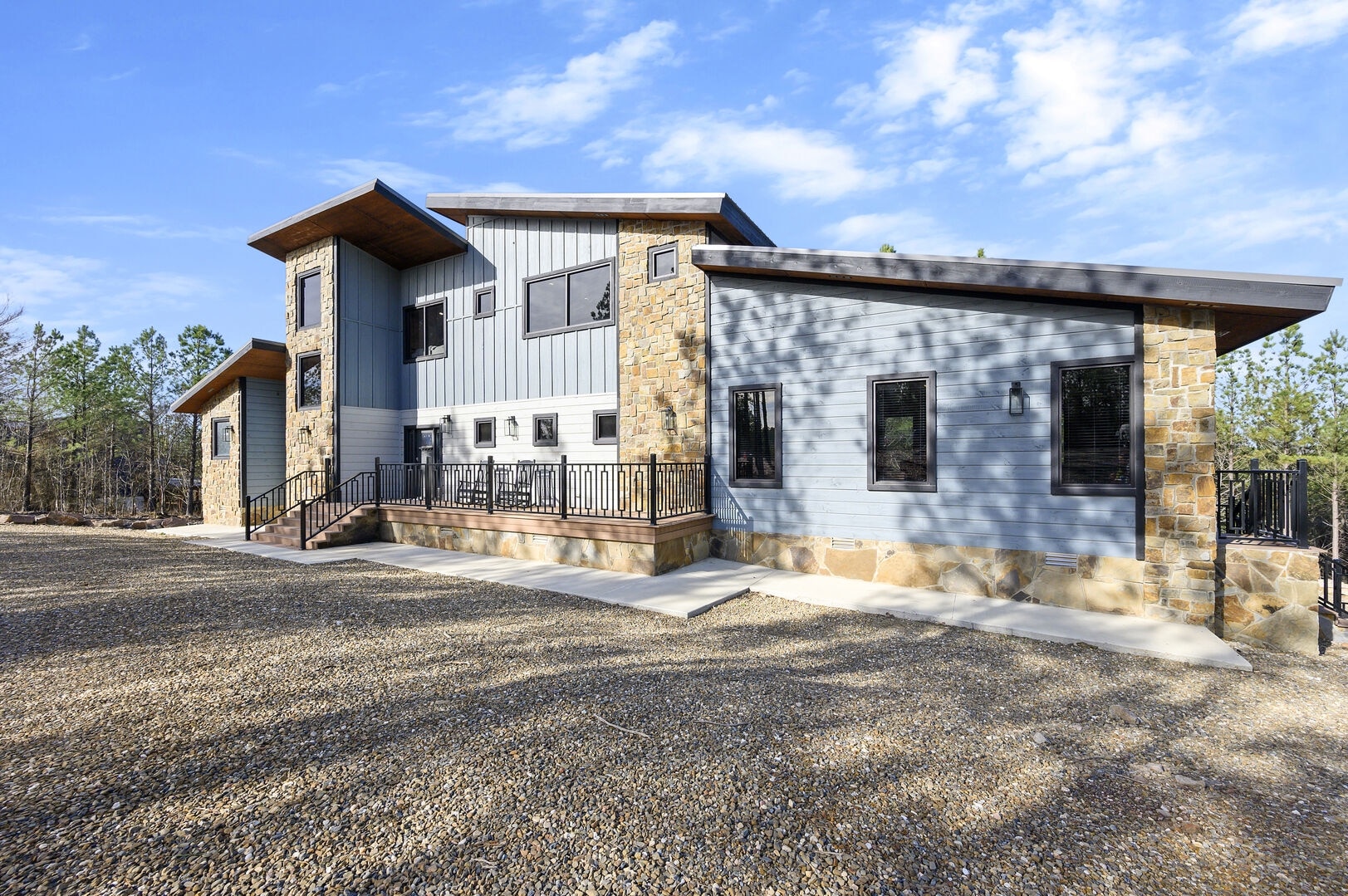 “Whole Lotta Luk” is your winning number! New modern luxury cabin in Broken Bow, If you want to feel like you won the lottery, A beautiful open spacious floor plan, with 3 king ensuite master bedrooms and a bunkroom/game room, you will find plenty of amenities! The game room, with 4 video arcade games, foosball, and a shuffleboard table, will sure to be a source of fun and laughter. The set of queen bunks or the three fulls will provide comfortable recharging stations at the end of an excitement filled day with sleeping for 12. The sectional and the tv are another source of comfort and entertainment. All of this and a full bathroom provided in an open roomy area make the game room a winner. The downstairs king master suite has a shower and a soaker tub. The bedroom rugs will have you curling your toes to the plush comfort. Upstairs you will be greeted by the landing and the view over the living room and the many large windows. There is a queen sleeper sofa in the loft with sleeping for 2. Two more king master suites upstairs provide the guests with more luxury in the bedroom and bathroom. The night stands have usb ports for charging and all three bedrooms have large closets.