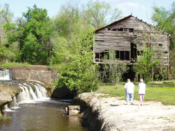 The water-powered grist mill was in operation on Clear Creek as early as 1819 by white settlers in old Miller County Arkansas Territory. The new mill was built in 1837 by Choctaw Joel Kemp. A later owner replaced the crude undershot wheel with a turbine-type wheel, which also powered the cotton gin. John Prince acquired the mill site in 1909, updated the machinery and replaced the log dam with concrete. He drilled two artesian wells and supplied water to town of Valiant for many years. The adjacent swimming pool was a favorite recreational facility. The mill ceased operation around 1944 and the swimming pool closed in 1962. Remnants of the mill remain. Tradition holds that two black slaves, Wallace and Minerva Willis, first gave voice to renowned Negro spiritual songs such as Swing Low, Sweet Chariot on a nearby Plantation.