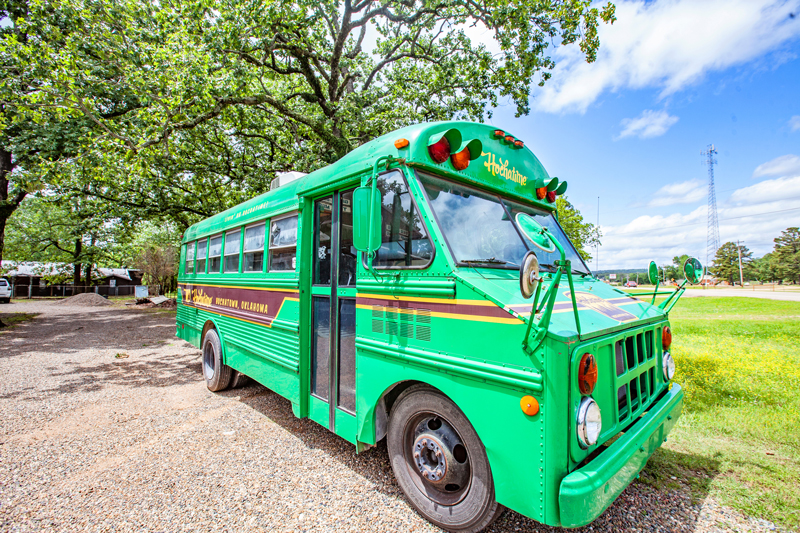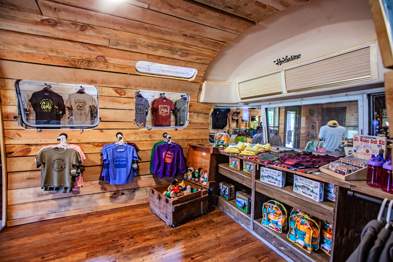 “We didn’t know what the future held,” says Jessica. “We came across an ad for a green bus – that had been a retail shop previously – bought it, and that essentially became our mobile shop. We would drive it around Hochatown and set up in different spots on weekends. That grew into – and fit into – more of the vibe and shopping experience of Hochatime.”
