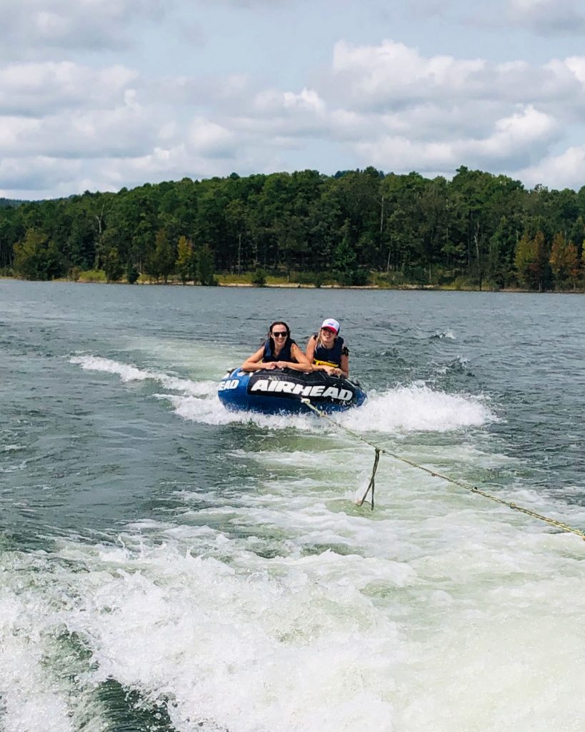 The weather for our four-hour cruise couldn’t have been better. And the scenery at Broken Bow Lake made it feel like we had transported to a place outside of Oklahoma. We took pictures, snacked on homemade trail mix we made at the cabin, and held on for dear life on the tube.