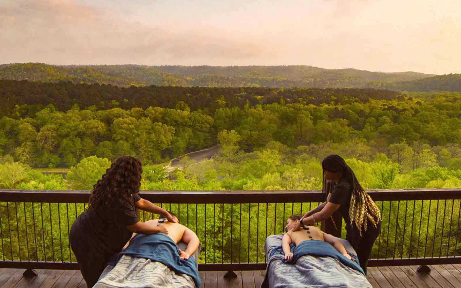 couples’ massage, but this ain’t your average side-by-side shiatsu. Beavers Bend massages are a little more intimate. And a lot more breathtaking.