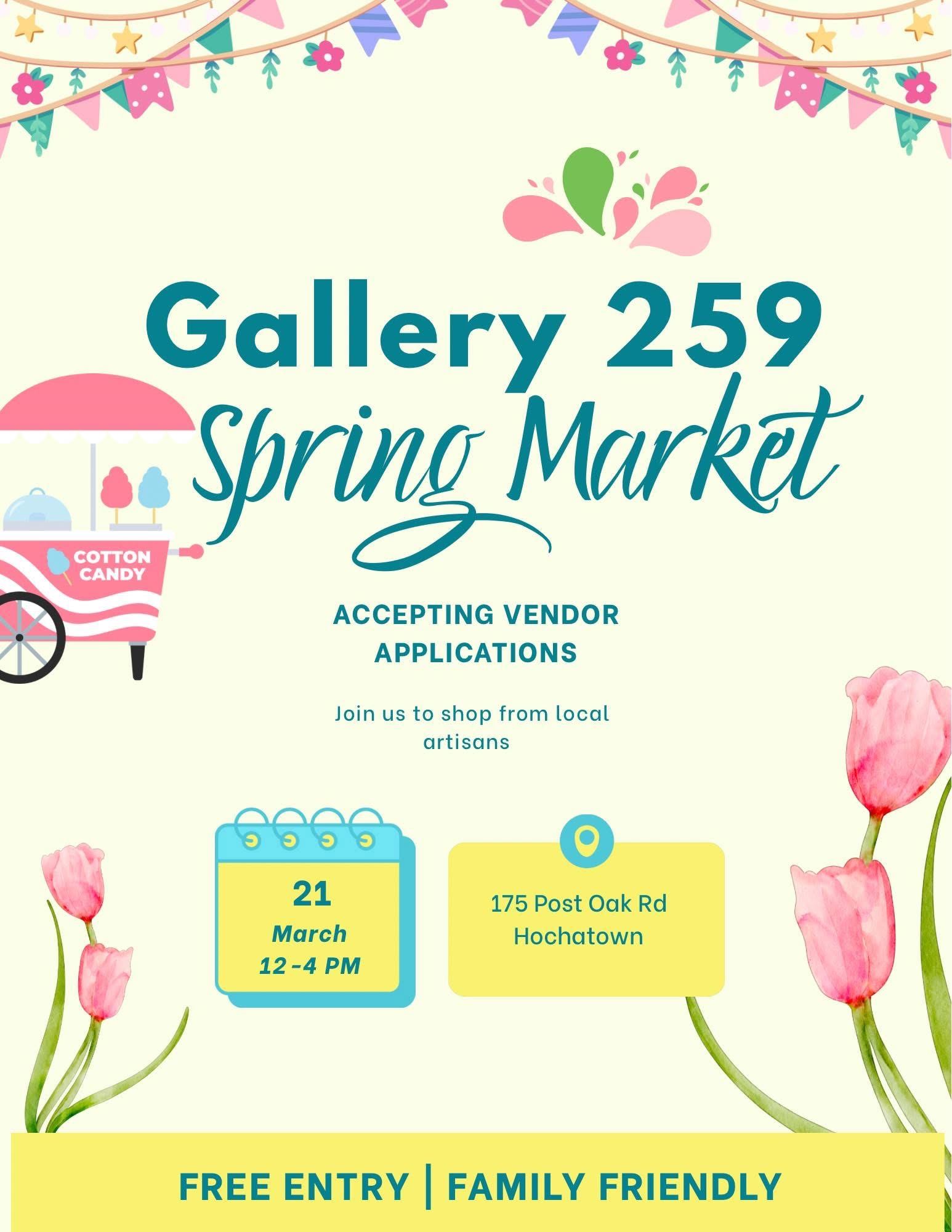 Gallery 259 Spring Market March 21 @ 12:00 pm - 4:00 pm Gallery 259 175 Post Oak Rd, Broken Bow, Oklahoma, United States